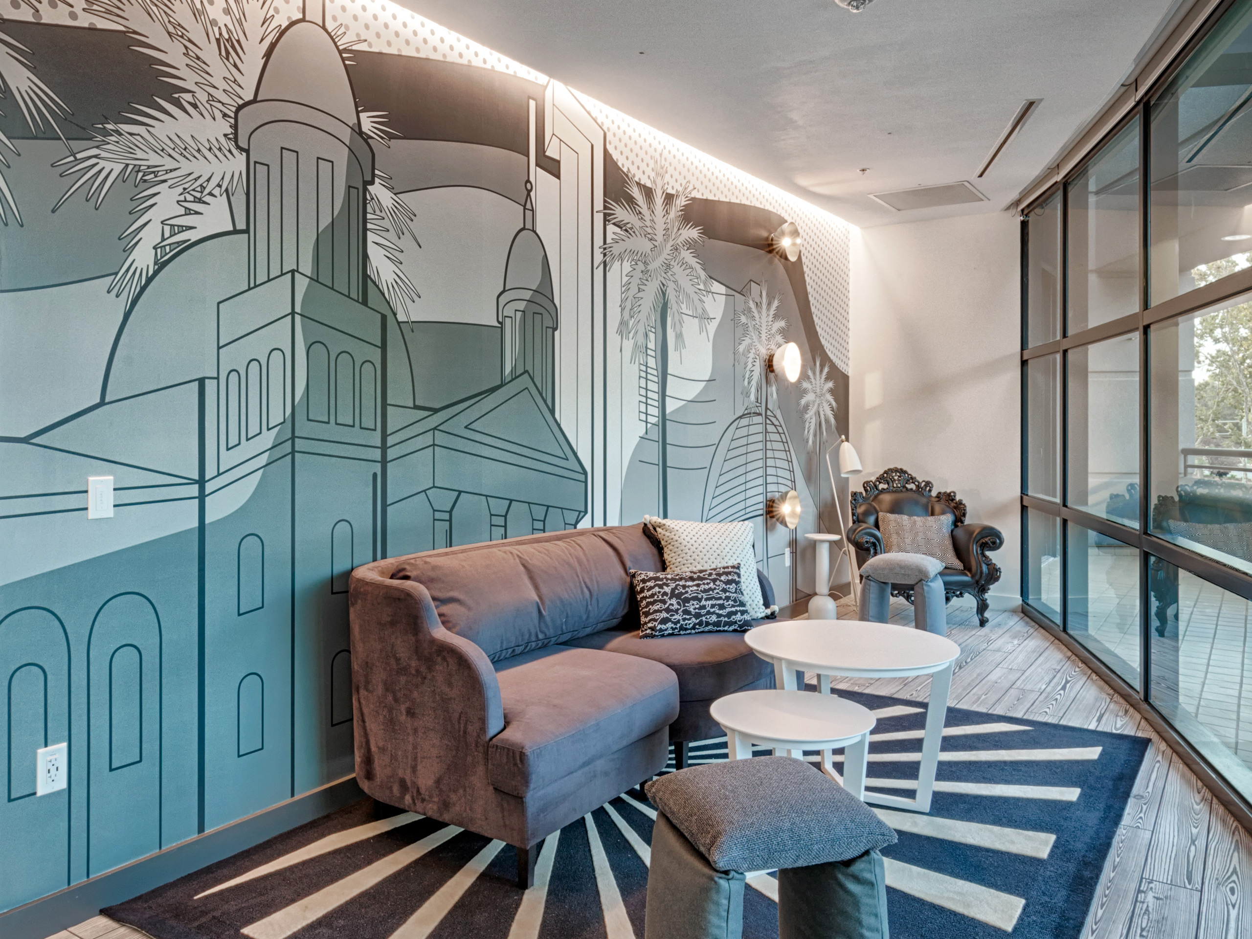 In the 285 Building we utilized a vibrant Bohemian Eclectic theme. Our graphics showcased many diverse textures, fabrics, and other organic elements. Local San Jose businesses, attractions, and icons informed our content stories in this building, with an emphasis on places that celebrate local culture, music, and arts.